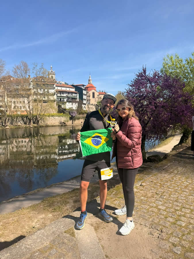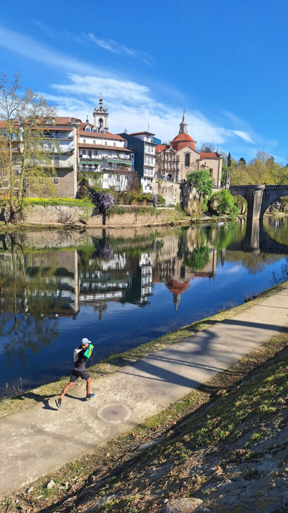 Depois veio a descida final em trilha até a cidade de Amarante. Corremos margeando o rio Tâmega, cercado de edifícios antigos, ruas de pedra e aquele visual bem característico das cidades históricas portuguesas, que dá um charme absurdo para a chegada. Que vibe!